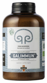 Izdelek vsebuje zmlete trosnjake in podgobje gobe Ganoderma lucidum iz ekološke pridelave, ne vsebuje sestavin živalskega izvora ter je pridelan brez uporabe kemičnih ali podobnih pripravkov. Vsebuje najširši spekter aktivnih sestavin svetlikave pološčenke, saj vsebuje tako gobo kot tudi podgobje in njegove ekstracelularne komponente (encime, antibiotike, probiotike..). Priporočamo jo tistim, ki veliko dajo na preventivo in ne prenesejo grenkega okusa čaja oz. tinkture. Galimmun® vsebuje velik delež najrazličnejših dobrodejnih vlaknin, obdelanih z ultra finim mletjem. Produkt je ultra fini prah, ki omogoča lažje zaužitje ter nekaj stokrat poveča sposobnost absorpcije učinkovin v organizmu.